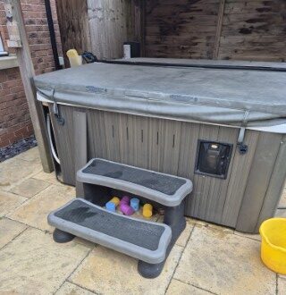 working condition. Led lights and sound system and plastic jacuzzi steps. The head rests have perished so they’ve been taken off so will need new ones. The cover and lifting bars are still in good condition. We even have a wooden gazebo with skylight if you wanted that aswell
