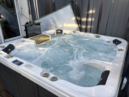 Not much info given from seller, other than it being a Large 6 Person Hot Tub and has a pop up DVD Screen. If interested contact us, and we will get more info.
