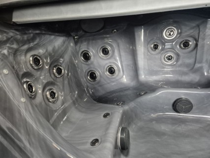 excellent condition, bought Sept 2020, 1 lounger, 5 seats, LED panel, lights with 13 modes, Wi-Fi enabled, bluetooth, speakers, fountain, bottom drain, 213x213x90cm, steps included, cover included